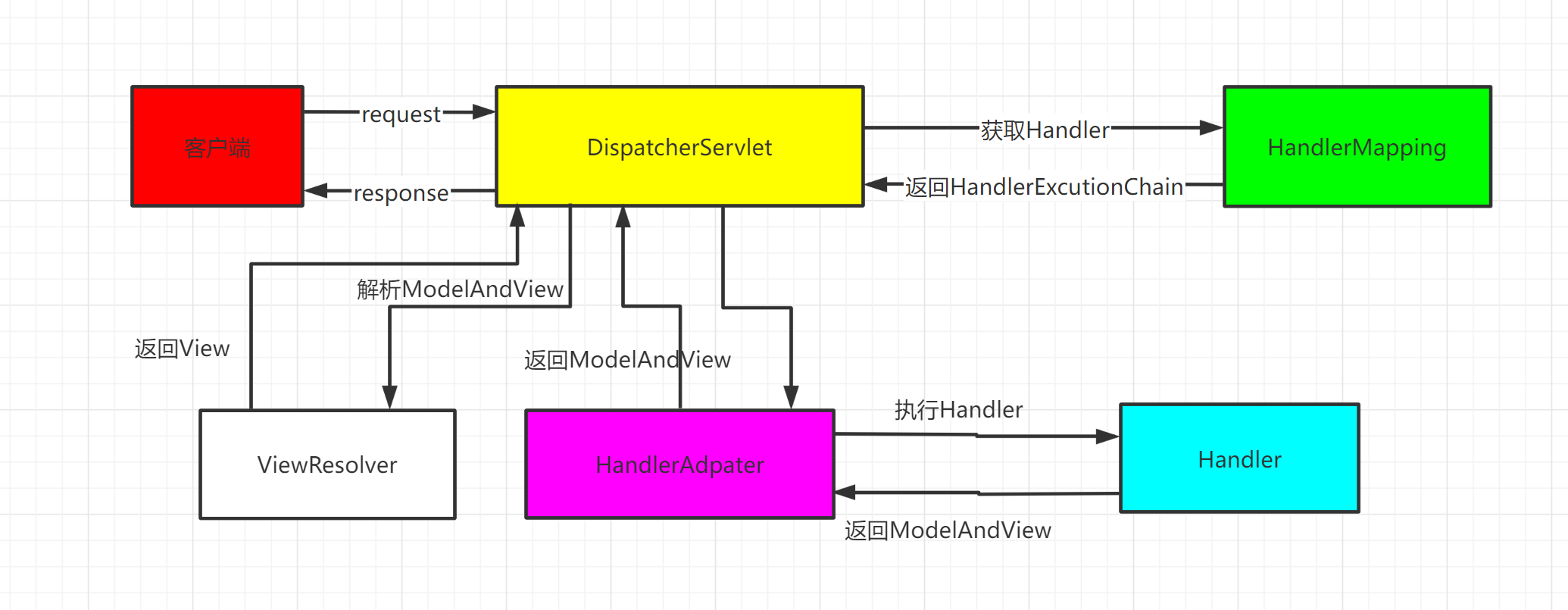 - Handler:处理器,完成具体的业务逻辑,相当于Servlet。
